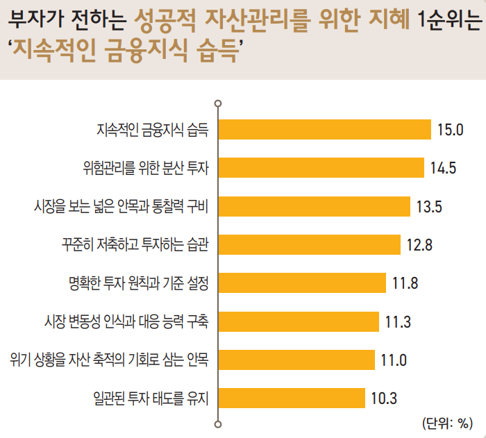어떻게 부자가 되었고, 앞으로 부자가 되기 위해, 지금의 부를 유지하기 위해 어떻게 할 것인가에 중점을 두고 있다.