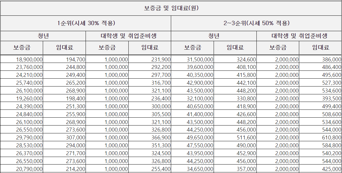 위 내용은 실제 sh 청년매입임대 공고문에 나와 있는 내용이다.