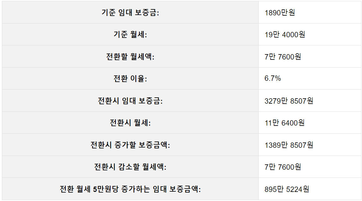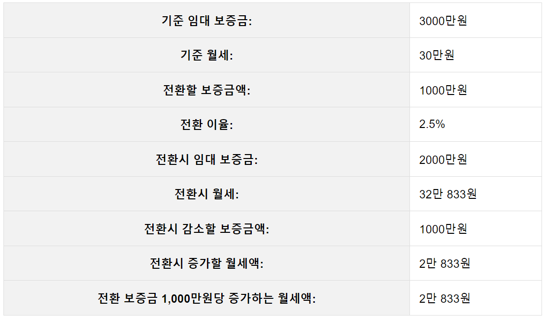 반대로 보증금 > 월 임대료 전환 (전세를 월세로 전환)